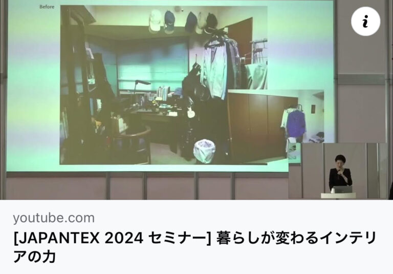 大変ご好評いただきました昨年JAPANTEX講演。 泣きました!共感しました! たくさんのお声がけをいただきました。 『JAPANTEX2024』セミナー登壇! インテリアコーディネーターの仕事の役割とは? 私たちはなぜ … 続きを読む 大好評のJAPANTEX講演、動画がアップされています!